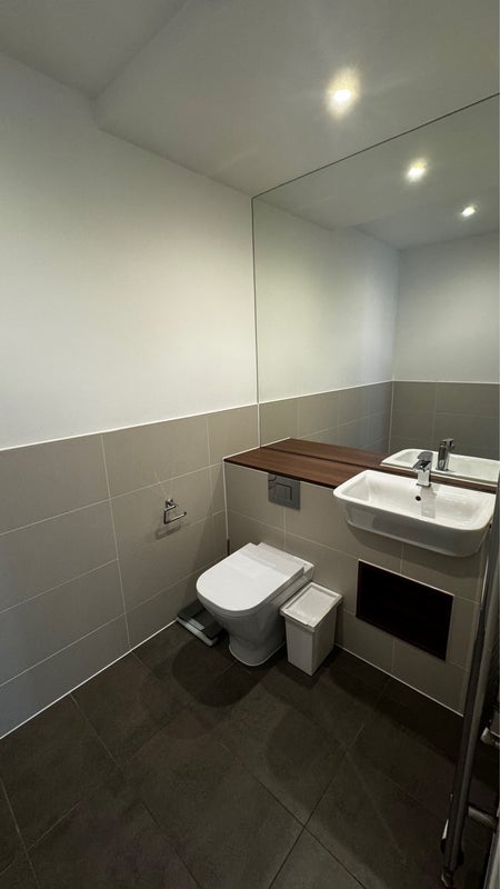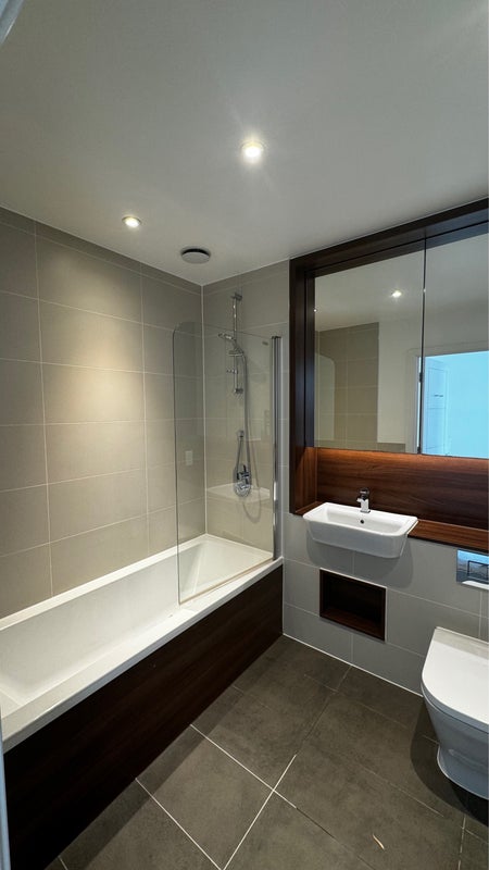 The en-suite bathroom is modern and stylish, featuring a contemporary shower, giving you the privacy and comfort of your own space within a friendly shared home.