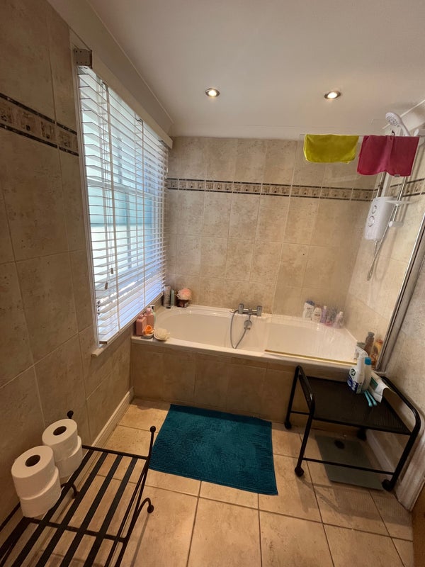 The bedroom is upstairs and shares the bathroom with 2 others on the same floor and there is also a downstairs toilet toilet and shower.