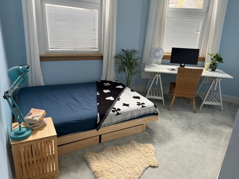 Bright and spacious double room available in a well located flat in a former pub. The flat is close to Devons Road DLR and a short walk from Mile End/Bromly-By-Bow (Central line and District/Hammersmith and City). Plenty of natural light with a desk for those that work from home and additional storage beneath the bed.