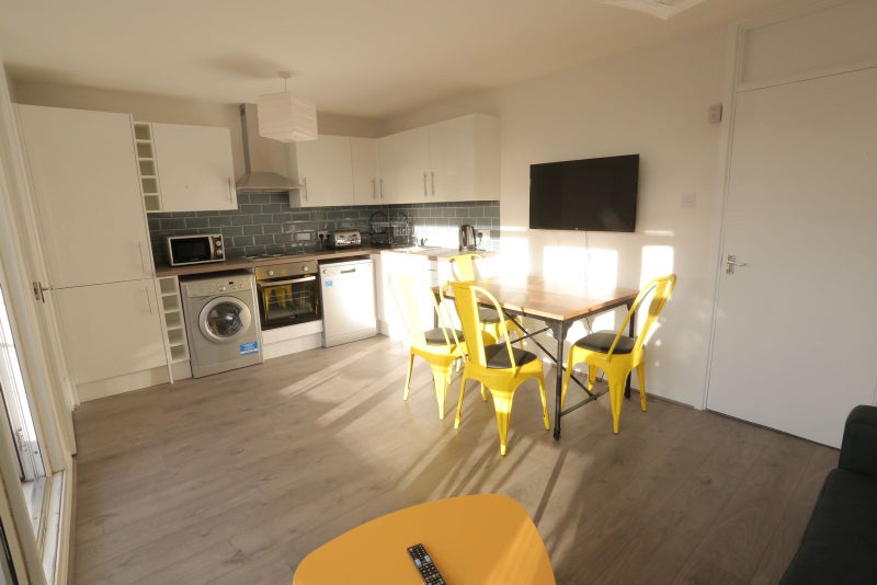 The flat centres around a generous open-plan kitchen, dining and lounge area, creating a sociable shared space for cooking, relaxing or catching up with flatmates. The communal balcony adds welcome outdoor space, while the kitchen is fully equipped with everyday essentials including a washer-dryer, dishwasher, microwave, oven & hob, plus fridge and freezer. An additional separate toilet alongside the main bathroom adds extra convenience for sharers.