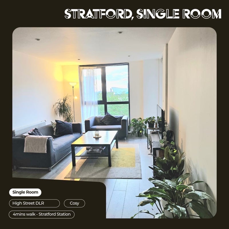 We’ve got a lovely single room available in a flat located in a prime area of Stratford. It’s just a 5-minute walk to Stratford Station and only 3 minutes to Stratford High Street, so you’ll have excellent transport links and everything you need right on your doorstep.
