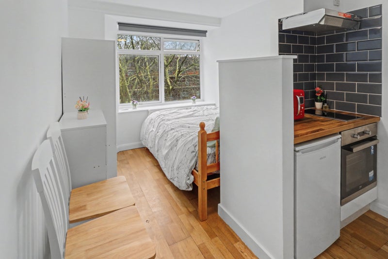 This is a great studio space with fitted kitchen and shower room. Located on the 3rd floor of the building in a lovely residential area close to the amenities of Hampstead and Finchley Road. Communal garden. Communal laundry room. Rent includes gas and water bills.