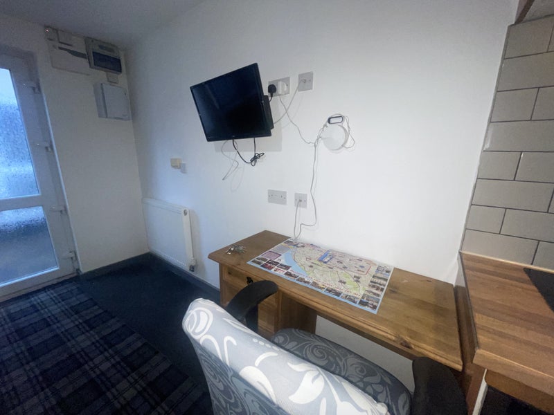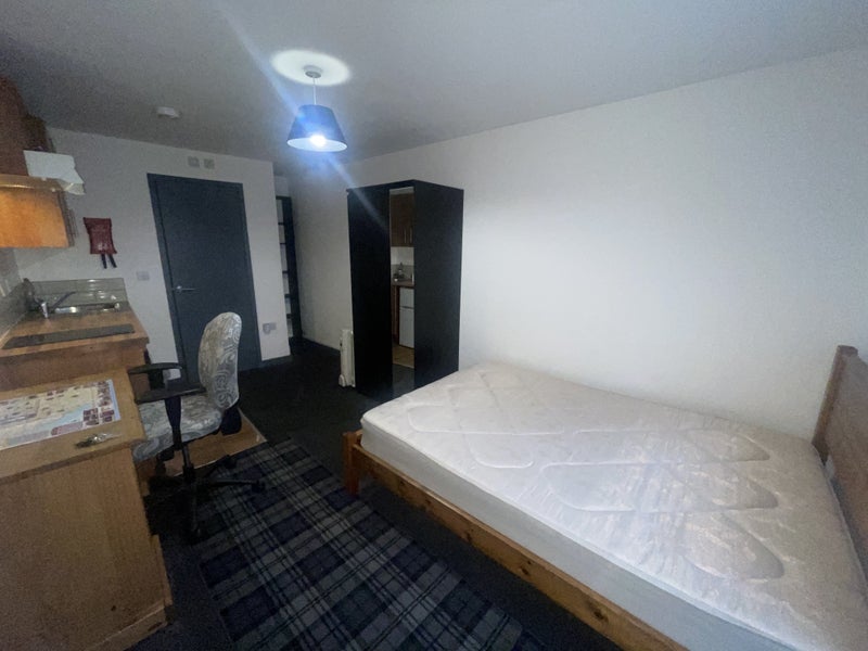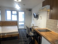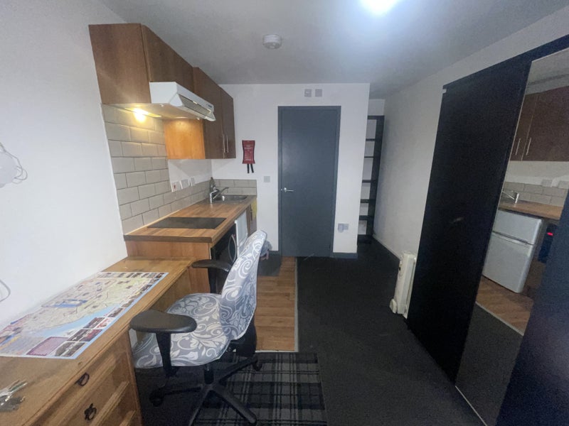 The studio is fully furnished to a good standard with desk, chairs, beds and wardrobes. Studio comes with kitchenettes built inside the studios along with fridge, microwave and kitchen space.