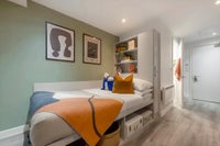 Located between the 10th and 18th floors, our Luxe Studios offer a premium living experience with stunning elevated views. With a size of up to 17m², these studios feature a well-designed layout, including a small double bed, monitor, extra storage space, and a kitchenette equipped with an induction hob, fridge-freezer, and combination oven, perfect for independent living. The room also includes French windows that allow plenty of natural light to fill the space, creating a bright and welcoming atmosphere. Ideal for those who seek privacy, comfort, and a peaceful environment on higher floors, these studios o er both style and convenience.