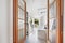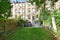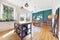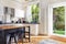 Double doors open directly onto a private garden with a paved seating area that’s perfect in warmer months.