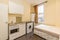 Self-contained studio flat in North End Rd, W14. It offers open-plan kitchen with washing machine and bathroom with shower.
