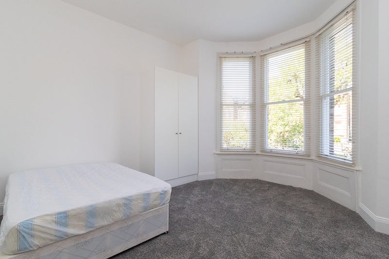 Large 2 bedroom flat in Kilburn. Located on the raised ground floor of a grand period building, the property is bright and airy with high ceilings and large windows. It comprises 2 double bedrooms, separate living room with a small balcony, fitted kitchen and a bathroom with bath and shower. Recently painted and carpeted throughout, the property offers good storage space and comes with access to a shared garden.