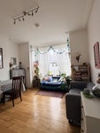 Living room / kitchen: Comes furnished with 2 sofas, white goods, table and chairs, chest of drawers, and a toaster. Amazing high ceilings and large windows for gorgeous light.