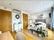 Hard flooring, wall and base units wooden work top, ceramic sink with swan neck tap, integrated wine cooler, dishwasher, space for fridge-freezer, induction hob, oven, extractor hood and uPVC double glazed door leading onto another balcony.