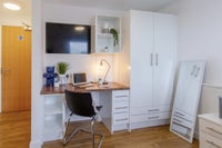 The student flats feature a fully equipped shared kitchen and a spacious living room, while the studios come with a private fitted kitchen. All rooms include a comfortable bed, desk, and chair, along with 100Mbps WiFi throughout the building. On sunny days, relax and catch some rays in the peaceful courtyard.
