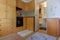 Open plan kitchen with oven/ cooker/ fridge