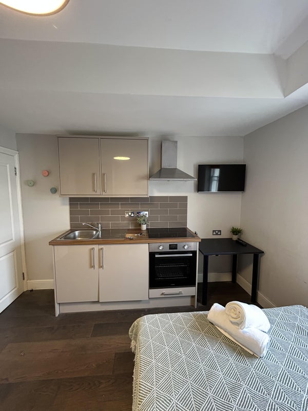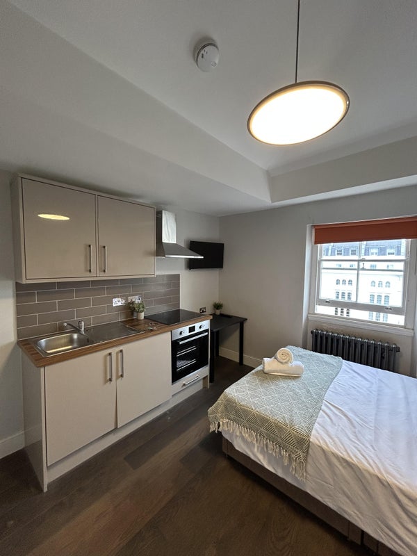 The studio apartment benefits from an integrated kitchen, double bed, private en-suite. The rent also includes, all utilties, gas, electric, water, WIFI and council tax. You only worry about 1 payment which you pay month on month for the duration of your stay.
