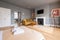 Light-filled and spacious, the apartment combines contemporary comfort with period charm, featuring wooden floors, a decorative fireplace, and a large bay window that floods the living area with natural light. The dining area enjoys views over the bustling street below and out to sea – an ideal spot to work, dine, or simply unwind.
