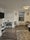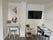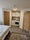 Kitchenette area: Wall and base units with Fridge, sink and standalone cooker.