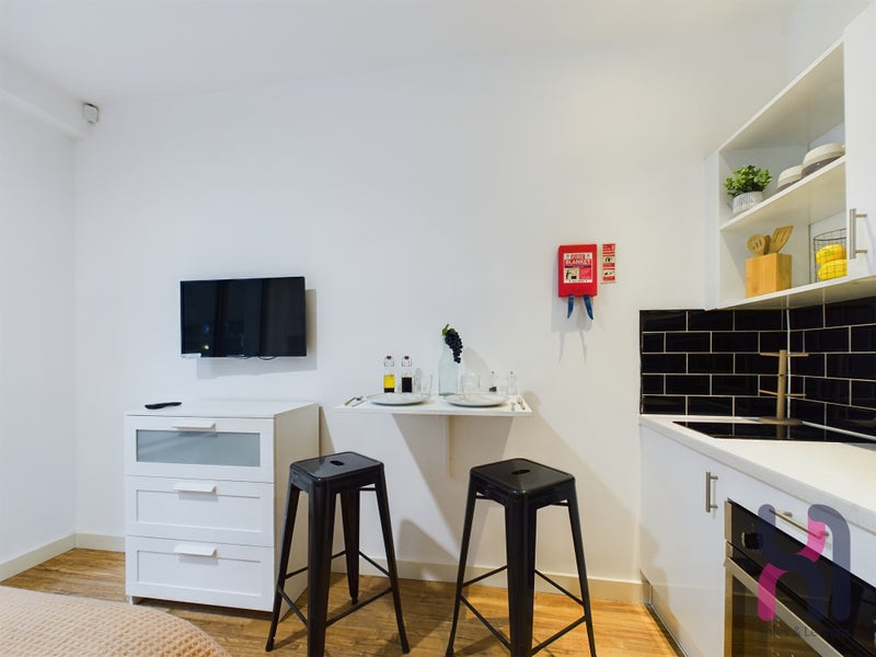 Fully furnished to a high standard, your studio will come complete with a double bed, mattress, foldable dining table, bar stools, study desk and chair and you will also be provided with a TV, microwave, kettle and toaster.