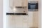 Modern studio apartment available. This furnished studio apartment includes a fitted kitchen with integrated appliances, separate sleeping and living areas, fitted storage, washer and dryer.