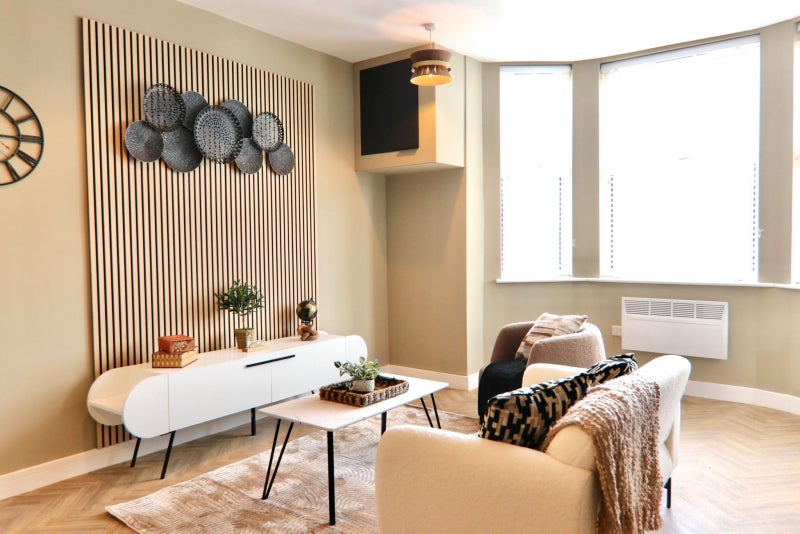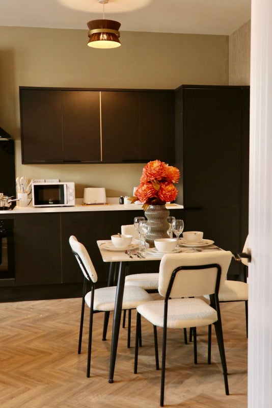 The apartment also benefits from off-road parking, ensuring convenient access for residents. The kitchen-diner has been designed with practicality in mind, offering ample space for both dining and meal preparation. The open-plan lounge provides a welcoming area for relaxing or entertaining, with large windows allowing plenty of natural light to fill the room.