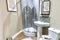 The bedroom is designed for comfort and is complemented by a modern bathroom fitted with a shower, toilet, and sink, providing all the necessary amenities.