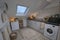 Kitchen includes fridge with freezer compartment, washing machine, hob & combi oven (oven, grill, microwave & air fry)