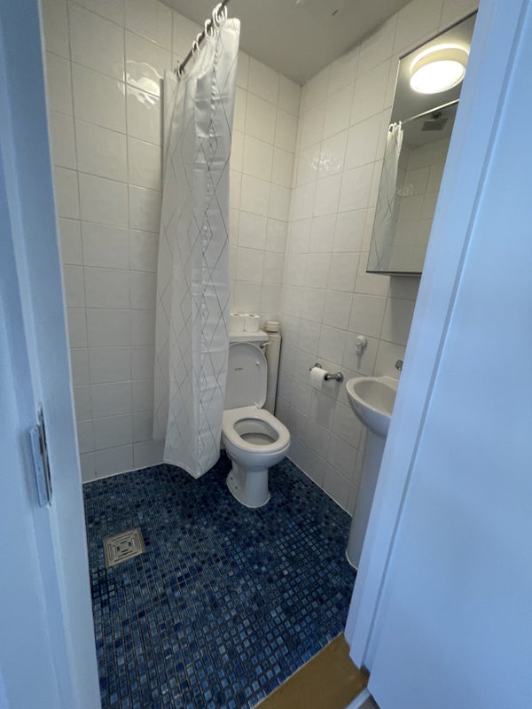 The bathroom is of a good size and has a shower room, as well as the toilet and the basin.