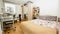 The rooms are neutrally decorated, with a double bed, chest of drawers, wardrobe, sofa, desk and a bedside table.