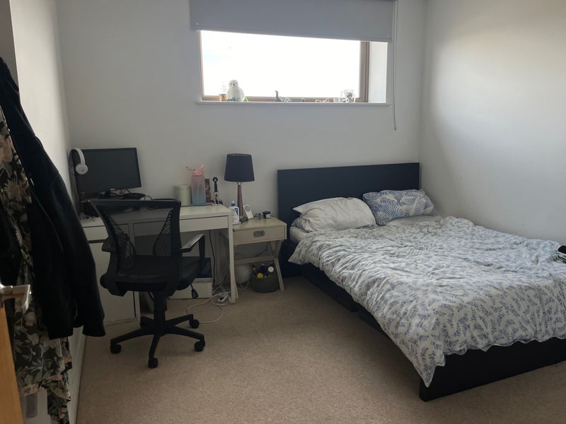 The room is furnished with a double bed, drawers, desk and wardrobe. We also have three closets in the flat that we share. Equal contribution to flat maintenance (regular cleaning, meter readings, etc) is super important. Bills are approx £200 a month for all utilities, council tax and fast wifi. The flat is also great for holding in heat so we haven’t had huge surcharges in the winter for heating. We treat this flat like our home and are hoping to find someone who will care for it the same.