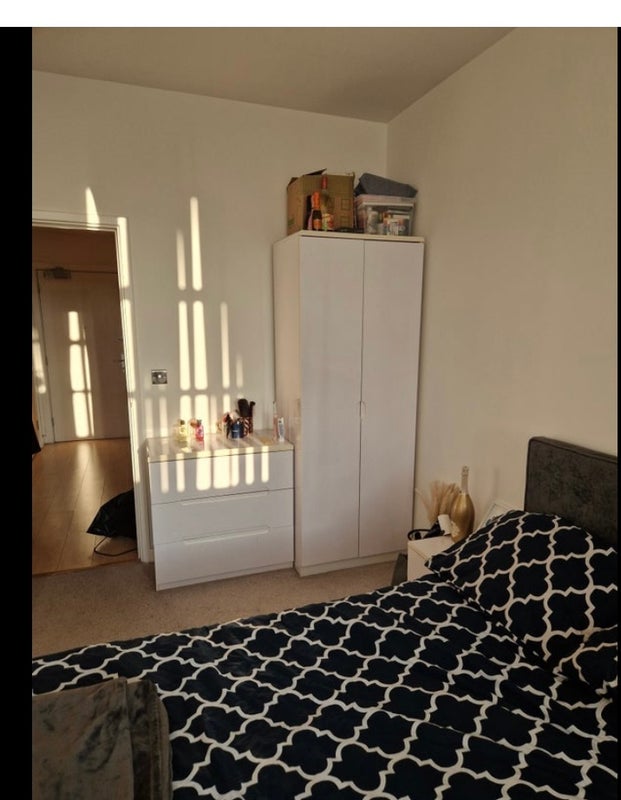A bright and spacious double bedroom is available in a modern 3-bedroom, 2-bathroom flat in Stratford. The room is fully furnished, and the flat offers excellent storage space along with a dedicated laundry area with a washing machine.