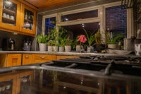 Bright, fully equipped kitchen with breakfast bar, gas hob, dishwasher, washing machine and dryer