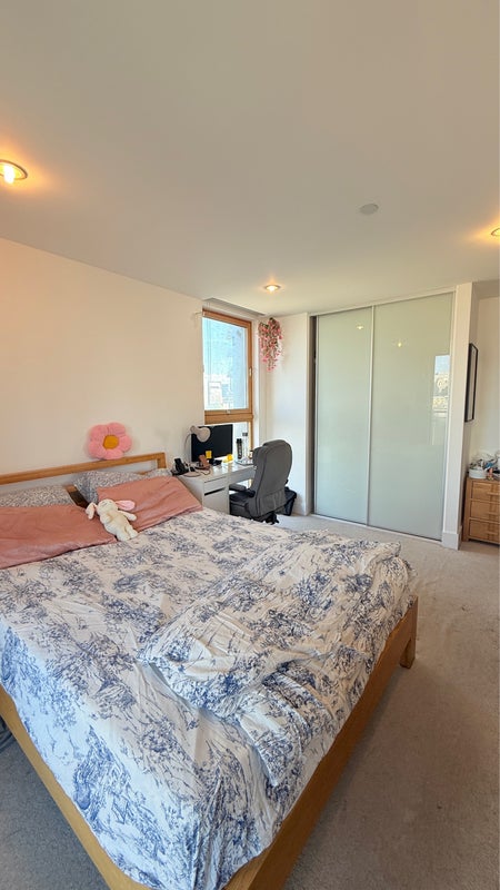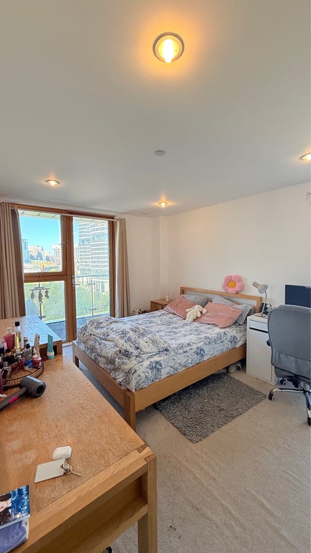 A very spacious ensuite double bedroom with your own bathroom. The highlight is the beautiful balcony overlooking Canary Wharf perfect for morning coffee or unwinding in the evening. The room is bright, airy, and comes fully furnished.