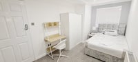 We are pleased to offer a spacious en-suite double bedroom in 6 bed houseshare for single occupancy. Room comes fully furnished; double bed, large wardrobe, full length mirror, workspace, TV, high speed fibre internet, etc…