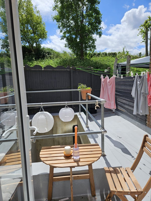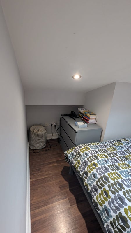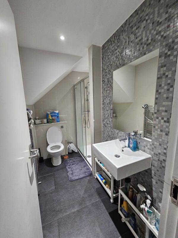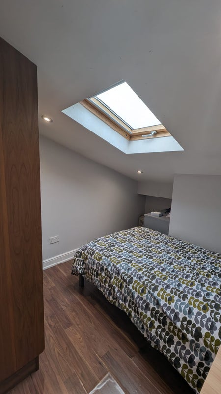 There's a big kitchen/shared living space, two shared bathrooms and a terrace waiting for you in Dollis Hill! Your room is on the very top floor, with a very nice skylight window.