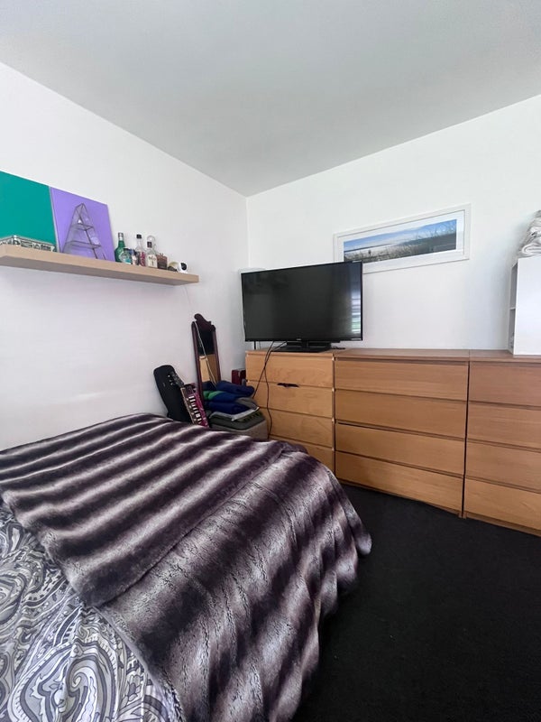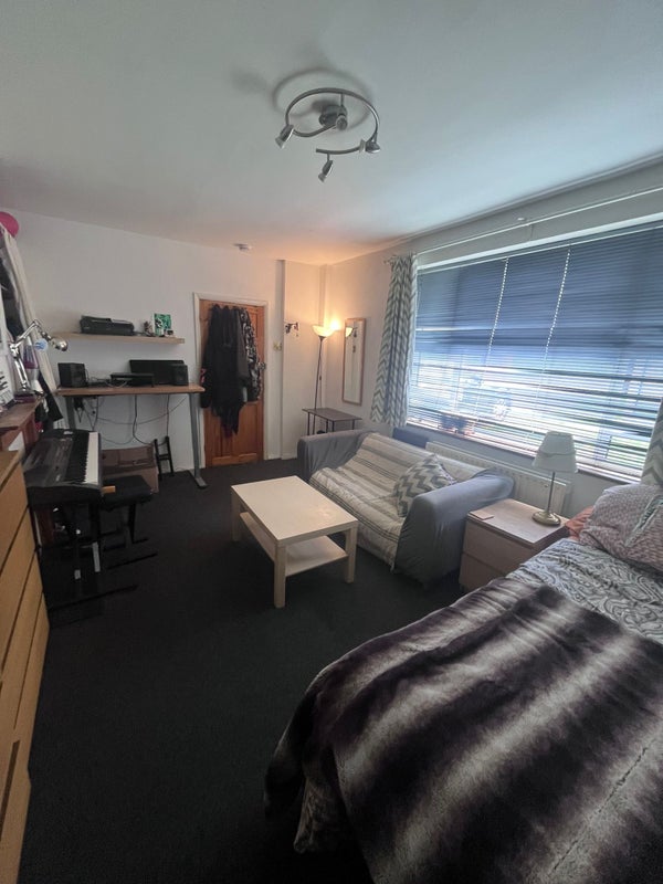 Very big double room with double bed and orthopaedic mattress, two seater sofa, coffee table, table with 2 chairs, 3 x chest of drawers and wardrobe, plus 40’inch TV
