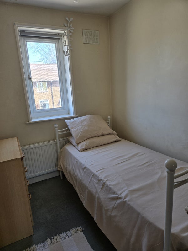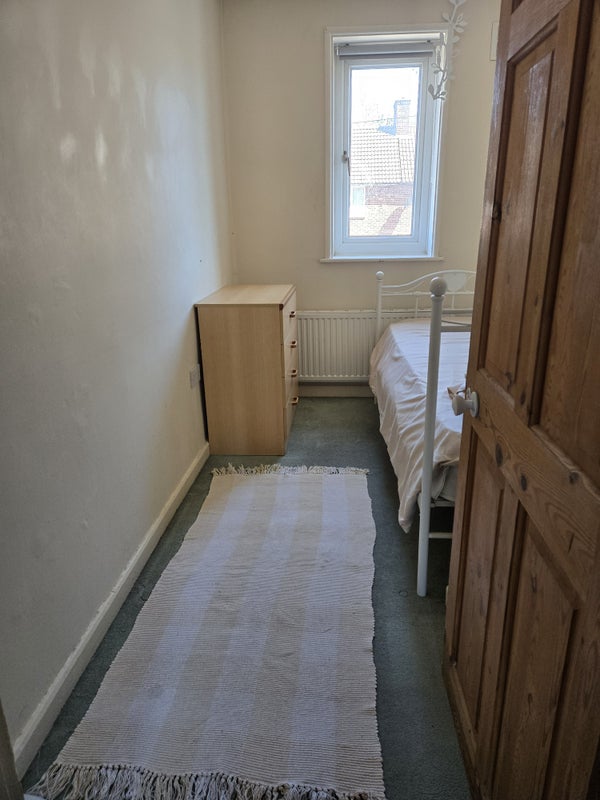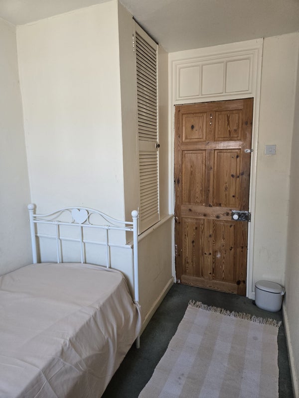 The room is upstairs at the front of the house with a single bed, a built in wardrobe and chest of draws.