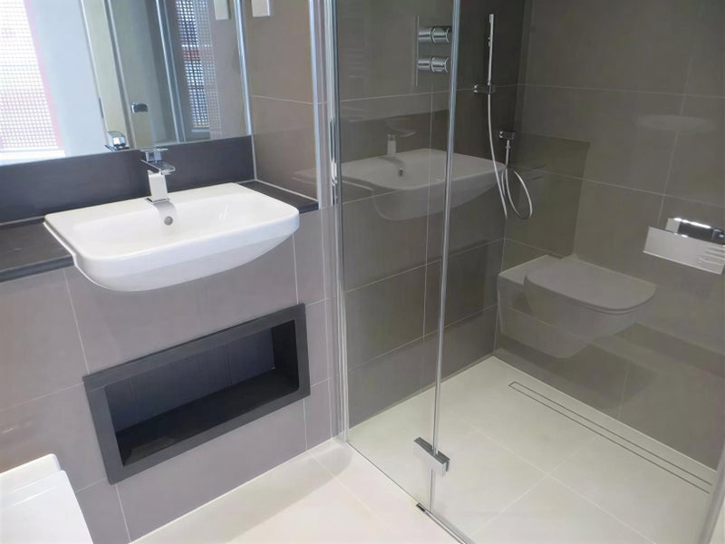 It’s a high-spec 3-bedroom apartment located on higher floor. Everything is modern, including underfloor heating and a fully kitted-out kitchen (dishwasher, washer & dryer- no drying racks taking up space in the lounge!).
